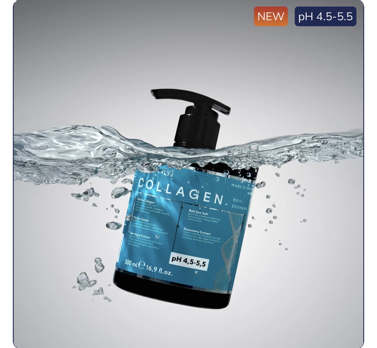 Збалансований pH 4,5–5,5 допомагає м’яко очищувати шкіру голови та не порушує природний баланс волосся. Морський колаген і еластин підтримують еластичність пасом, а волосся після миття виглядає більш гладким і структурованим.